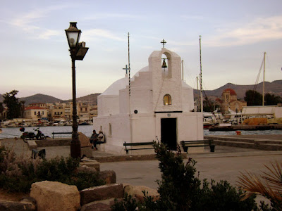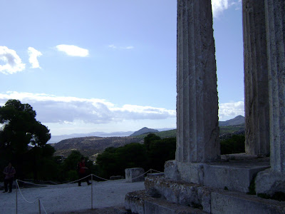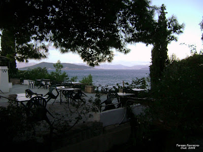 Do terraço frente ao meu quarto vejo o mar, com o seu azul infantil, outras ilhas mais pequenas, frente a Aegina, até à costa montanhosa do Peloponeso.