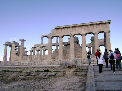 Num dos pontos mais altos da ilha, há um templo dórico, ainda mais antigo do que o Partenon: o Templo de Aphaea. É um templo muito bonito, pequeno e equilibrado. As suas belas colunas foram construídas com pedras tão perfeitamente ligadas que parecem feitas de um só bloco. Ainda hoje conseguimos apreciar a sua estrutura interna, embora as peças esculpidas tenham sido retiradas e levadas para Berlim, no século XIX.